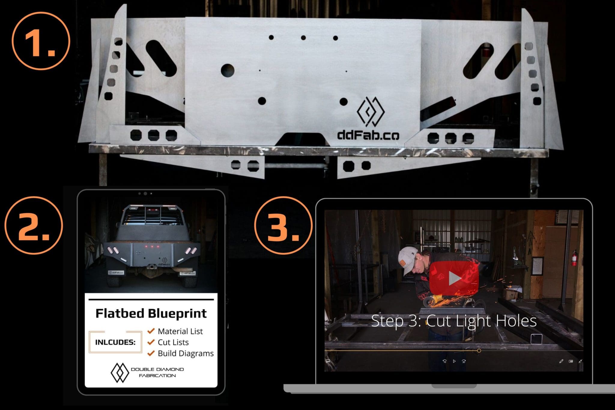 - Start to Finish Video Tutorial – this completely exhaustive step by step video tutorial is over 5 hours long, and gives a step by step guide to build, wire, and install your flatbed.