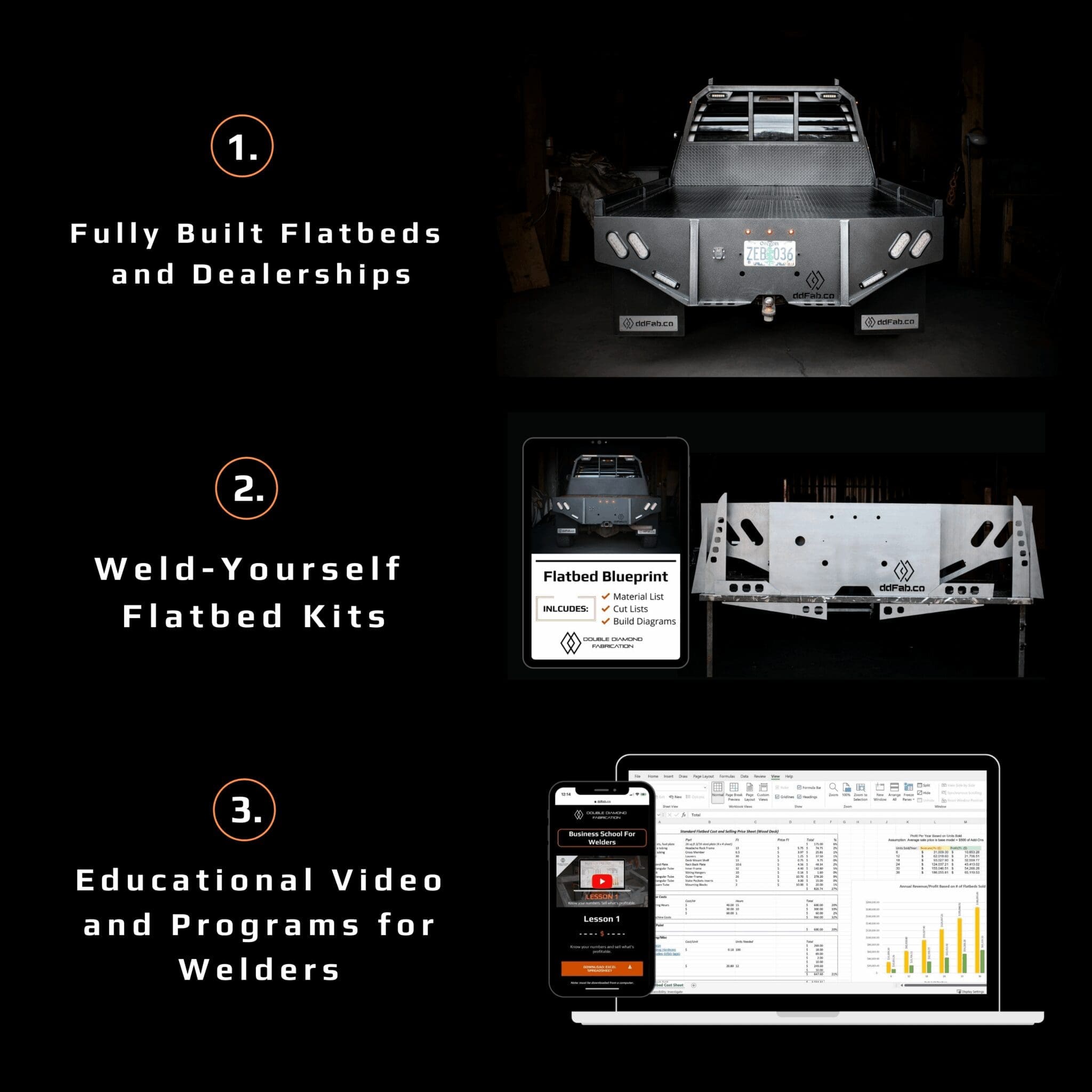 Double Diamond Fabrication is a multi-product welding company headquartered in Central Oregon. They started as a local welding shop building and installing flatbeds. Since their founding, they have evolved into selling weld-yourself flatbed kits, educational programs for welders, and product licensing with over 25 flatbed dealers nationwide.