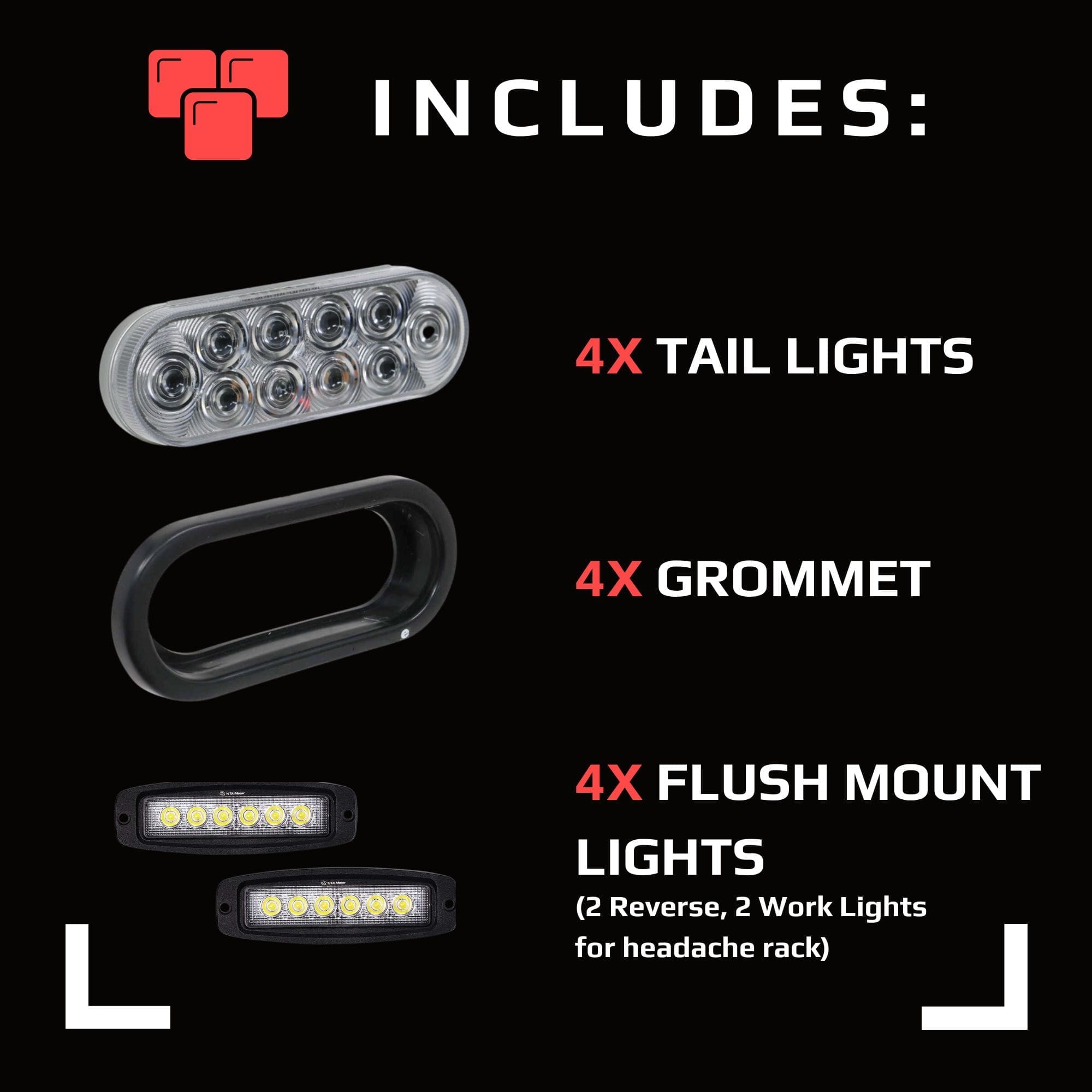 - 4x Clear Lens Optronics brand tail lights. (Lifetime Warranty)