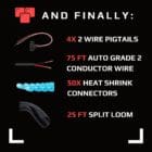- 75 ft. of 18 gauge 2 conductor automotive grade wire with road protective casing (Made in USA, solid copper core)