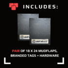 - Pair of 18 x 24 Mudflaps with branded tags/hardware. Tags are made from 1/8″ aluminum.