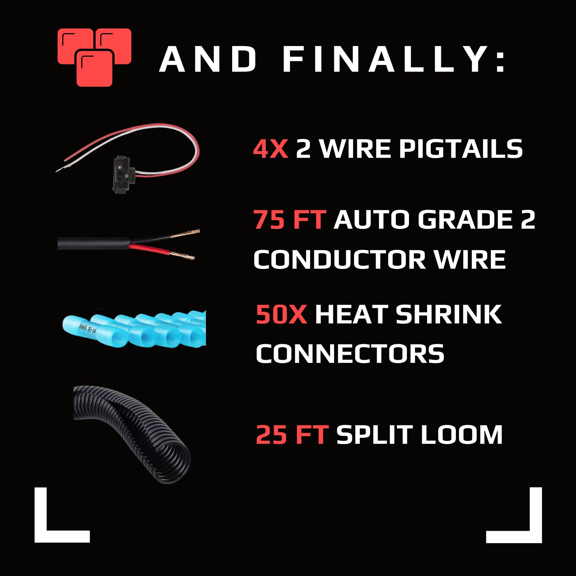 - 4x Two Wire Pigtails (for reverse and work lights)