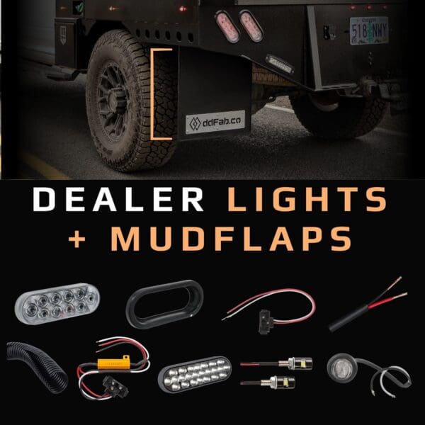 If you need to order lights or mudflaps separately due to a past order discrepancy, please reach out to us directly via email at support@ddfab.co.