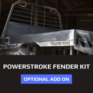 Toolbox/step fender designed to be used with 30″ long toolbox on long bed models only. Wheel cutout will be 56″ back  from cab to center of axle if kit is used with 30″ long under body toolbox.  Includes both driver and passenger sides. Fenders are 4.5 inches deep. bottom of step is 14″ inch deep. Built from 3/16″ thick steel.