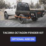 Optional add on available for all years and bed lengths of Tacoma’s (choose your model and bed length above). A great add-on for style and functionality for a place to hook ratchet straps. Includes both driver and passenger side. Rear section is 3.5″ deep, front section tapers from 5″ to 3.5″ deep (see photos). Made from 3/16″ thick steel. Includes driver and passenger side.