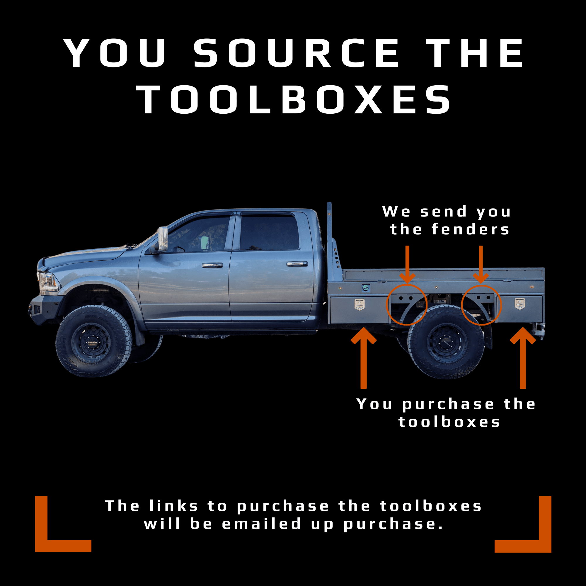 This kit does not include all parts needed to complete your flatbed – you will have to purchase all of the generic steel at a local steel dealer and all of the toolboxes. The amount and type of steel you’ll need to purchase is laid out clearly in your model specific blueprints. The physical parts we ship are simply the laser cut parts you cannot buy locally. You can download the material list of the steel and toolboxes you’ll have to source here to get the total build cost.