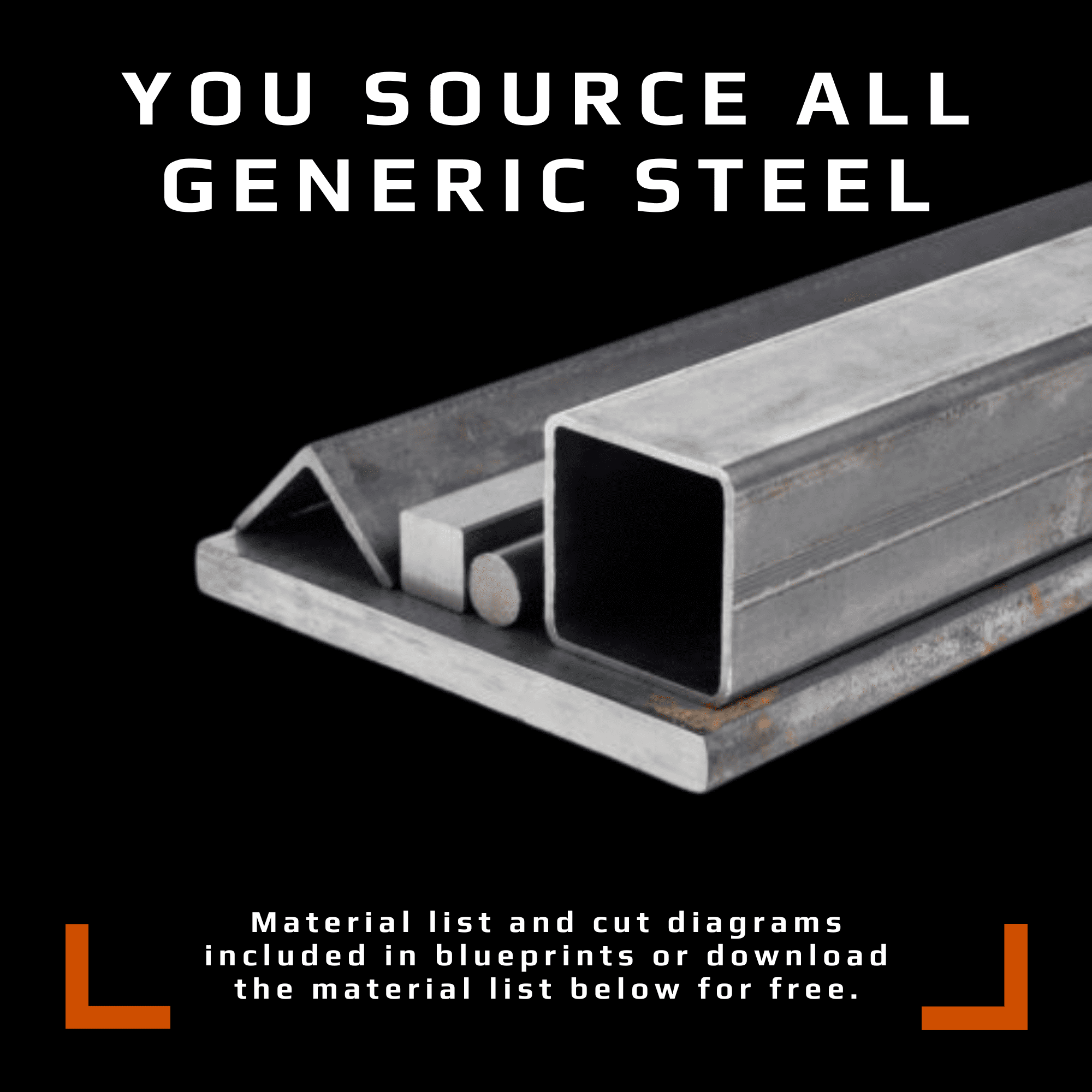 Our Kits are unconventional in that we don’t send you everything, only the machine made parts that you can’t purchase locally. Why? Because it would be what’s known as a rip-off to charge you for mark up and exorbitant amounts of shipping cost to sell you generic steel that you can buy locally without a middle man. That being said, you’ll be responsible in purchasing the generic steel to make the process as affordable as possible. Download the free material list so you can get an exact cost for everything you’ll need. We’ll still send you the machine made parts and provide you with the blueprints to make the build seamless.